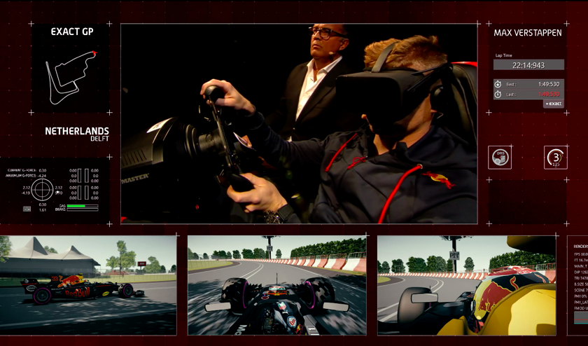 After designing The Exact Dutch Grand Prix circuit in Virtual Reality, it was presented as a surprise challenge for Max to drive for the first time in front of a live audience of over 5.600 people at the Exact Live event.